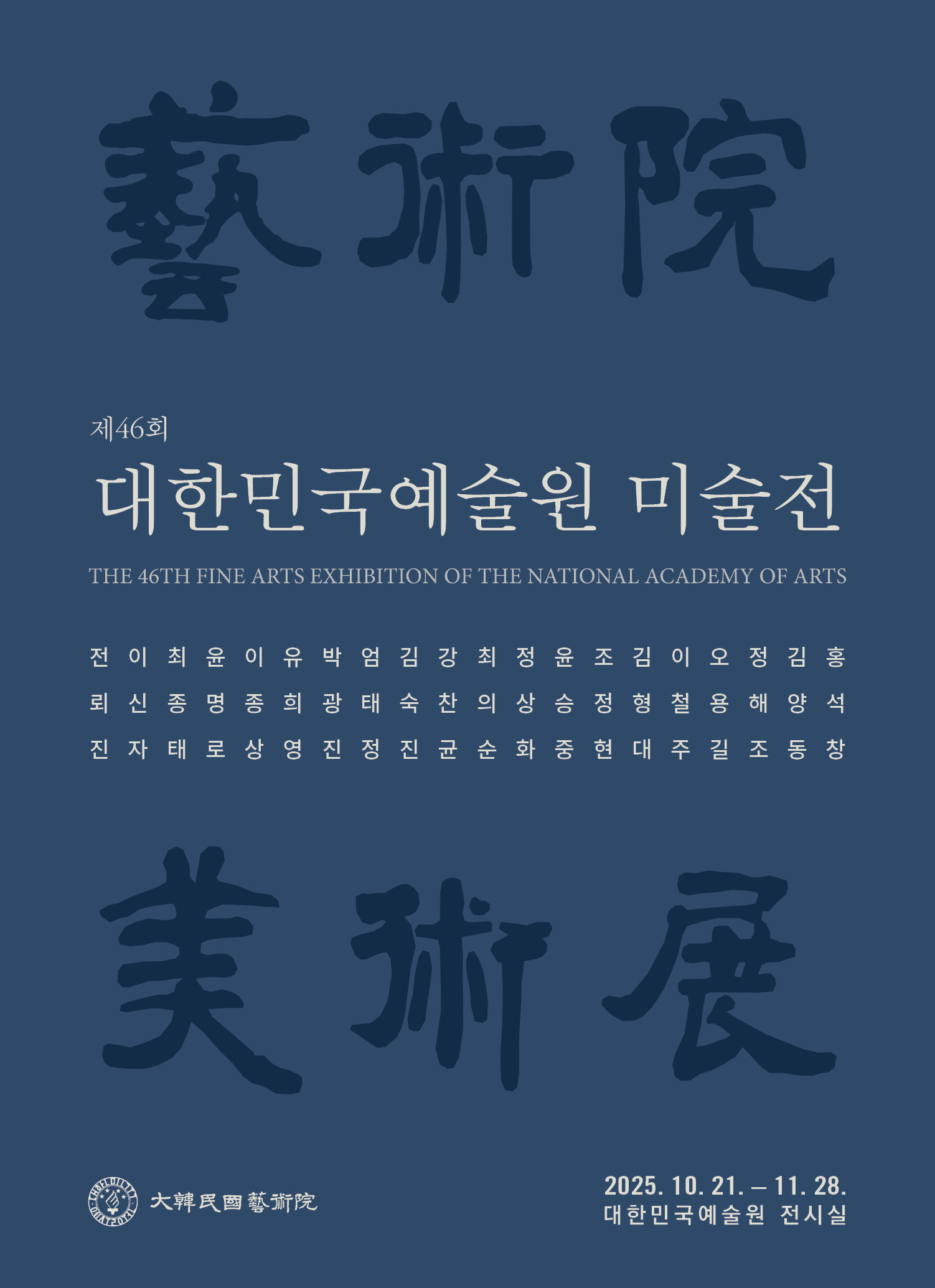 대한민국예술원(회장 신수정, 이하 예술원)은 10월 21일(화)부터 11월 28일(금)까지 예술원 1층 전시실에서 《제46회 대한민국예술원 미술전》(이하 예술원 미술전)을 개최한다.